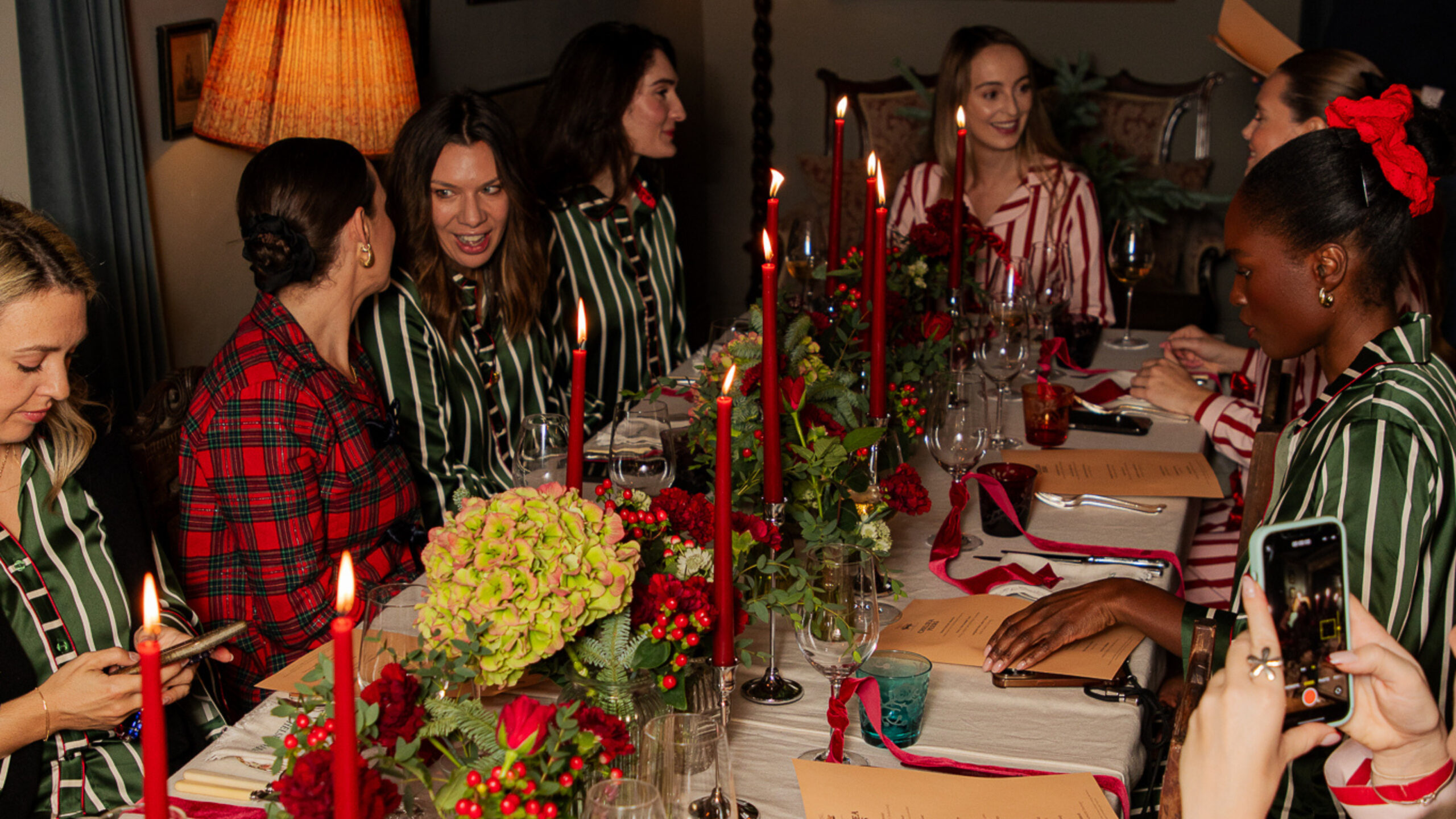 The experience continued with indulgent spa treatments before guests gathered for a seasonal dinner at THE PIG’s 25-Mile Menu restaurant, arriving in Chelsea Peers’ elevated Christmas pyjamas to showcase the collection’s playful sophistication. The night concluded with a cosy movie screening, complete with festive treats and relaxed lounging, capturing the true spirit of Chelsea Peers’ feel-good approach to the season